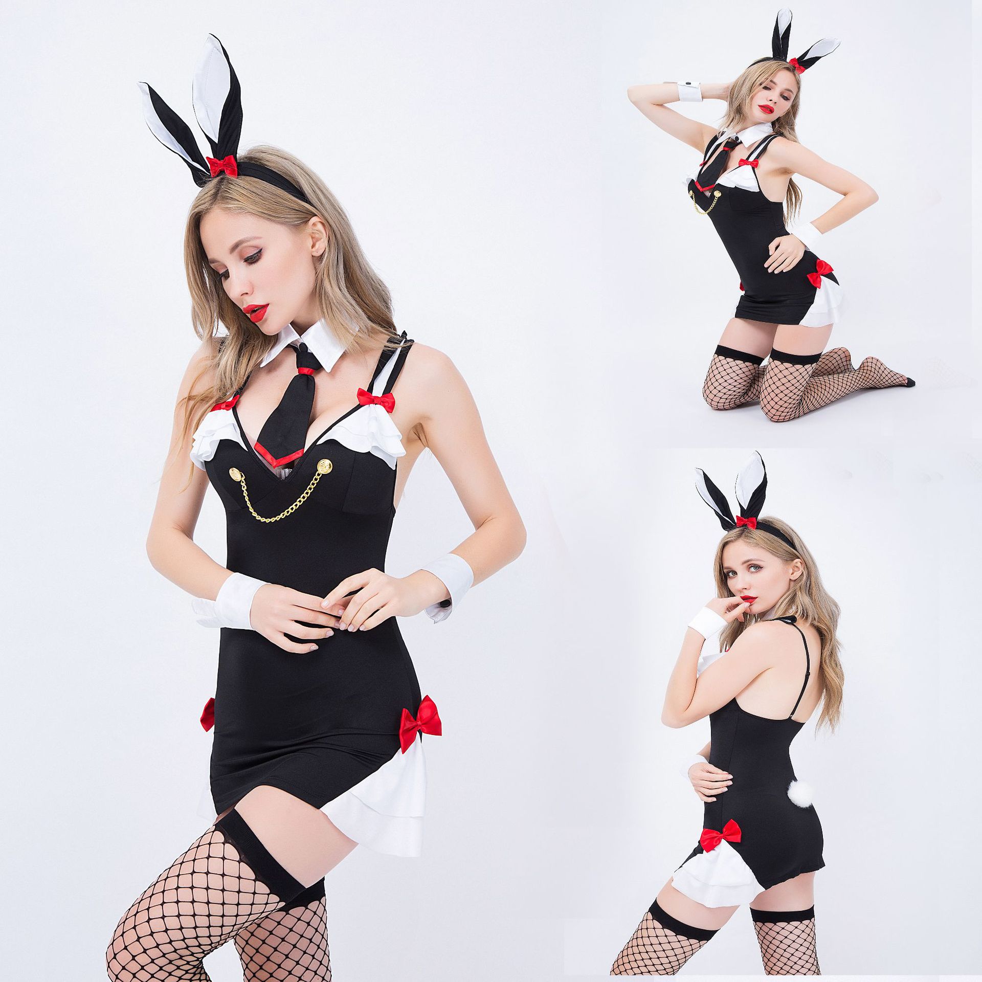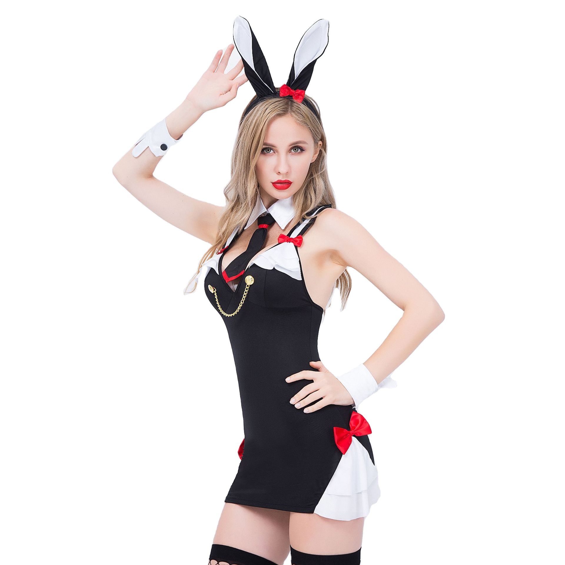 Adult Black Sexy Naughty Bunny Costume Women's Fantasy Erotic Bunny Lingerie With Bunny Ear