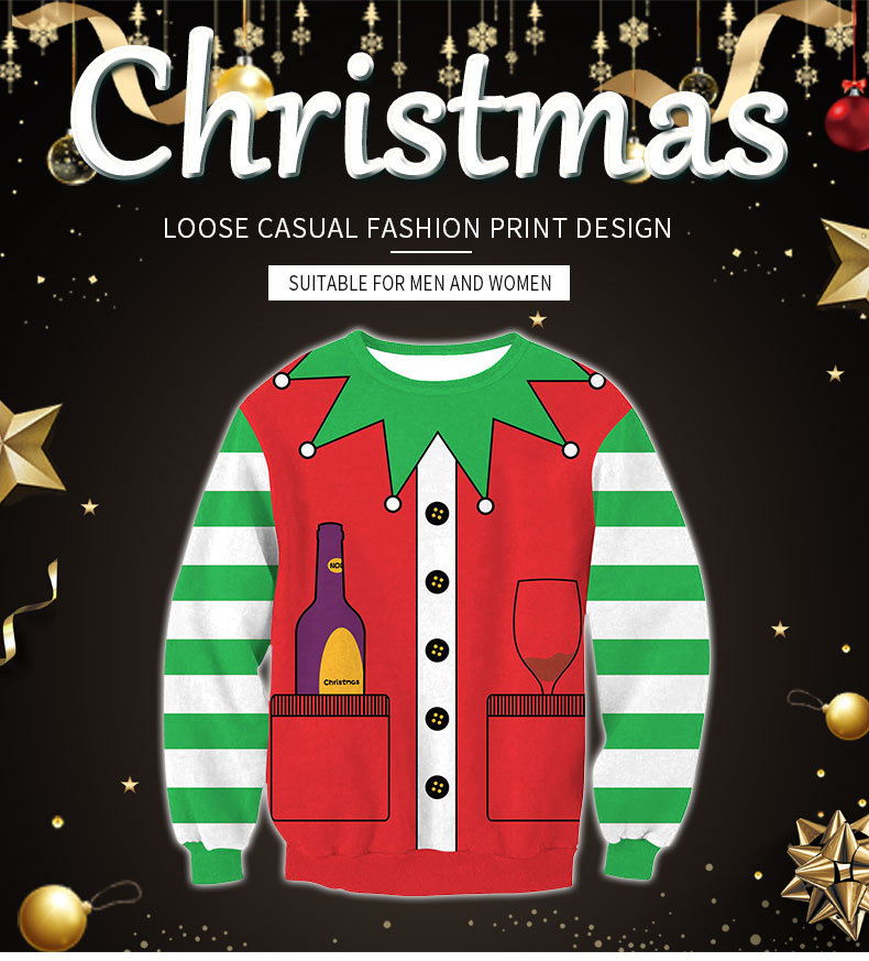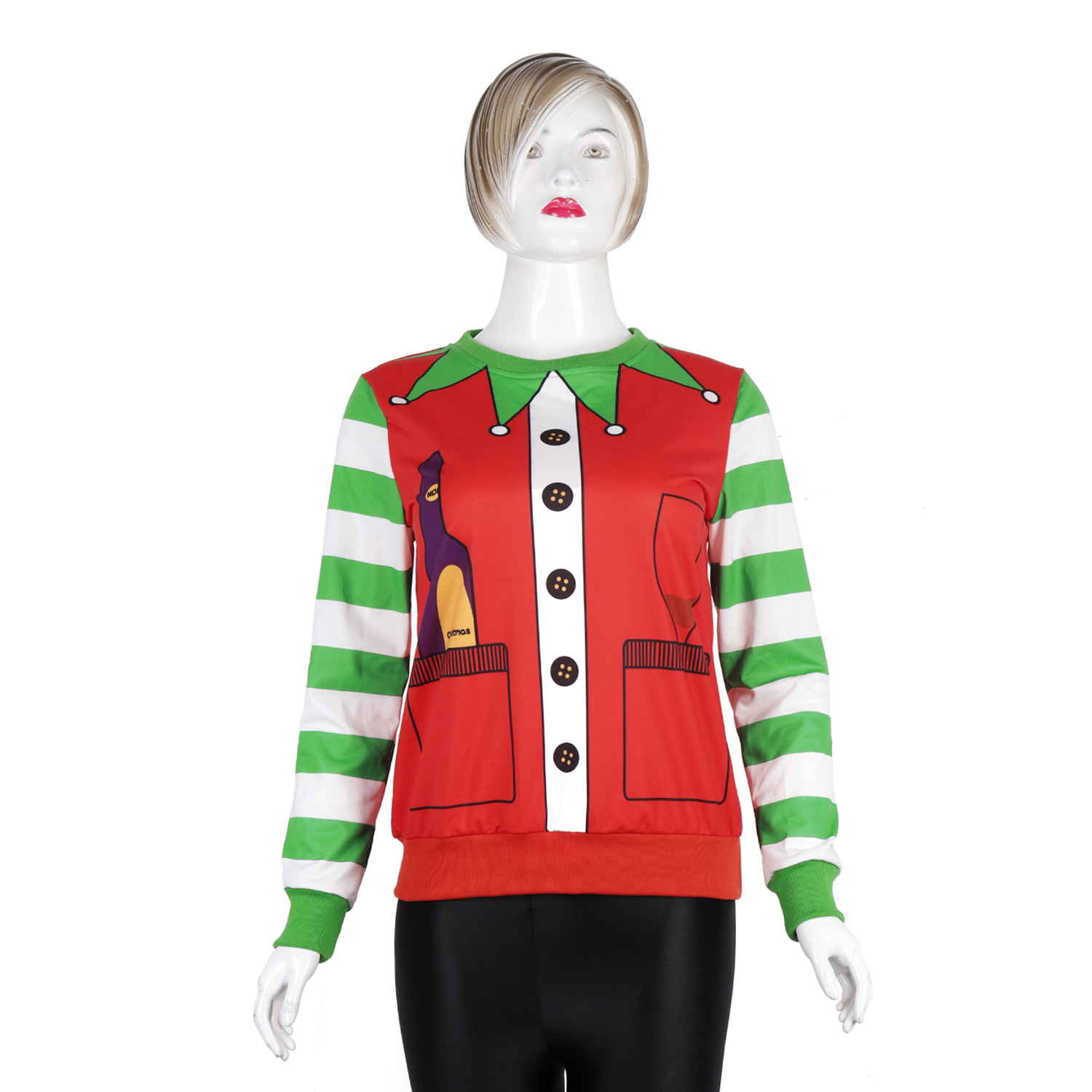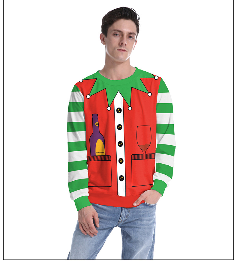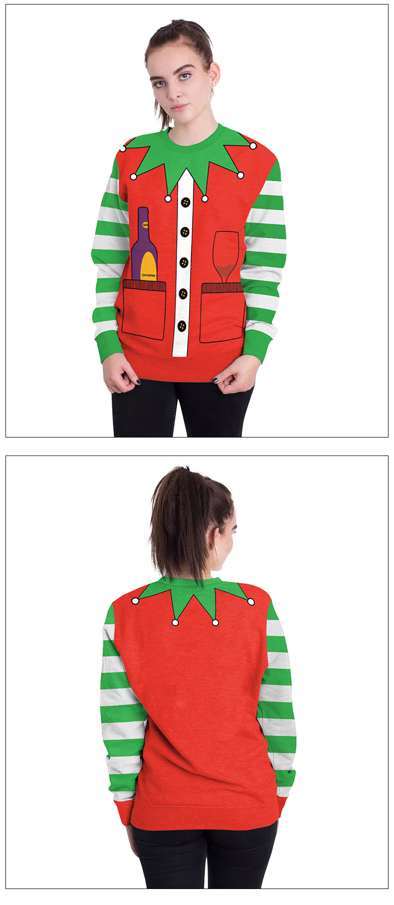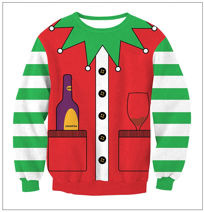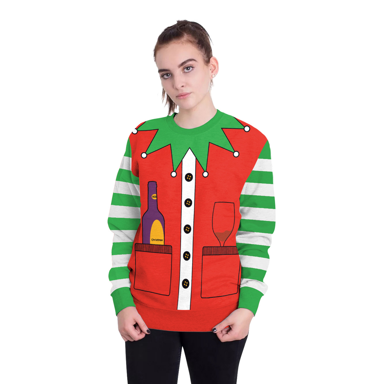 Adult Red Round Neck Long Sleeve Sweatshirt Wine Bottle Glass Pattern Sweatshirt Unisex