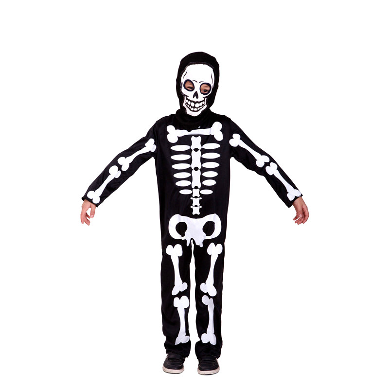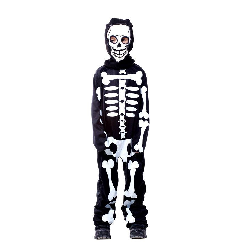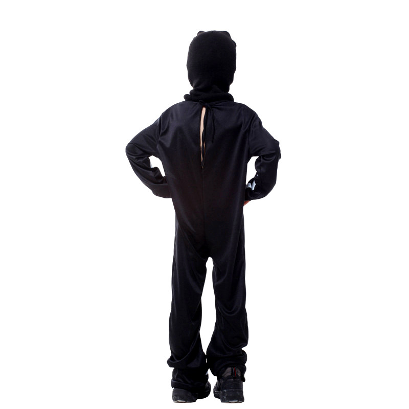 Black Hooded Jumpsuit Halloween Cosplay Costume Kids White Skeleton Halloween Scary Costume