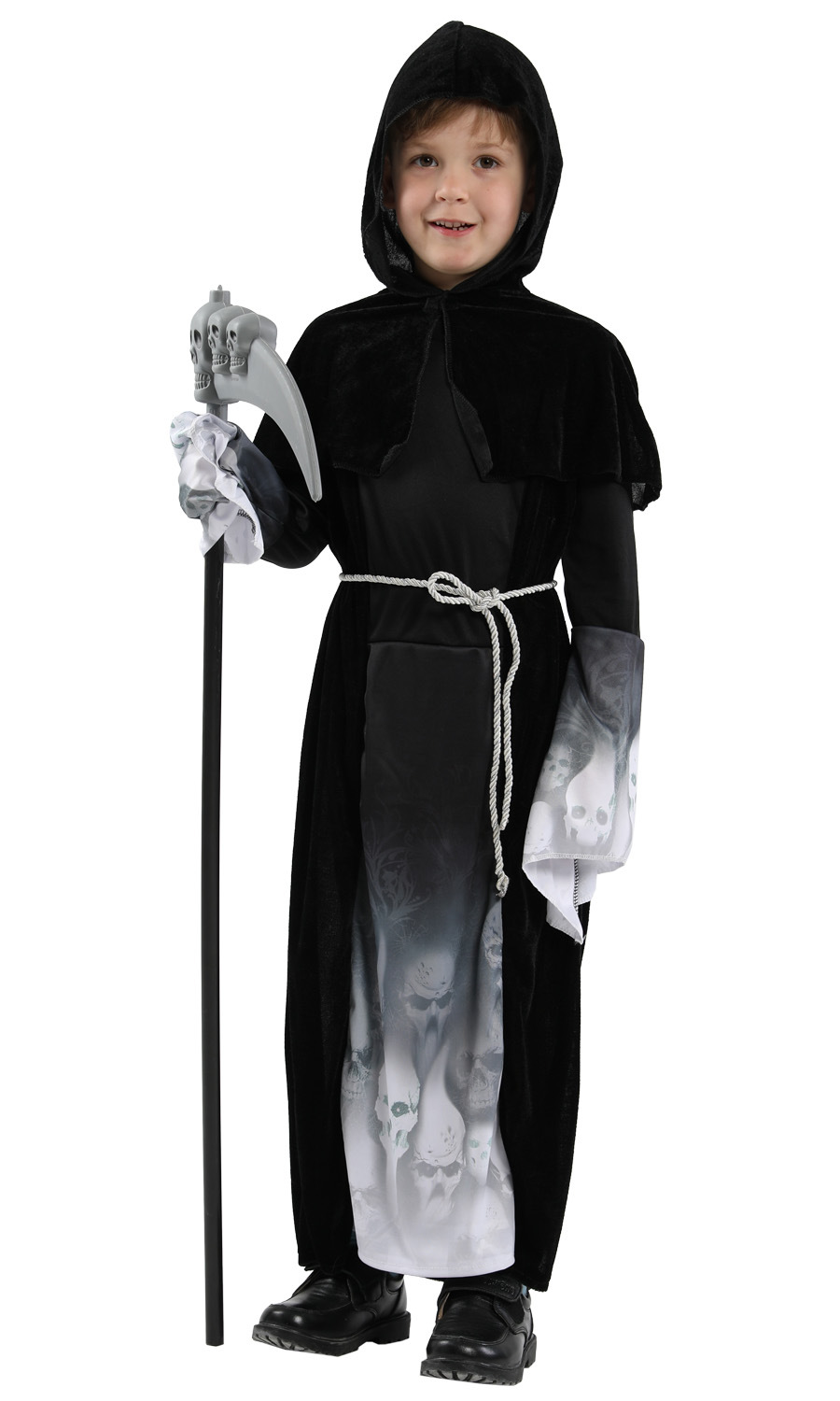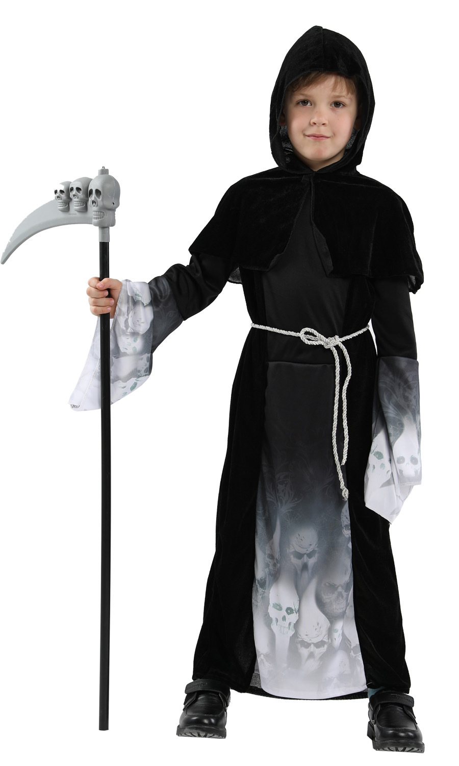 Boys Skeleton Scary Cosplay Costume Halloween Kids Black Hooded Halloween Party Costume