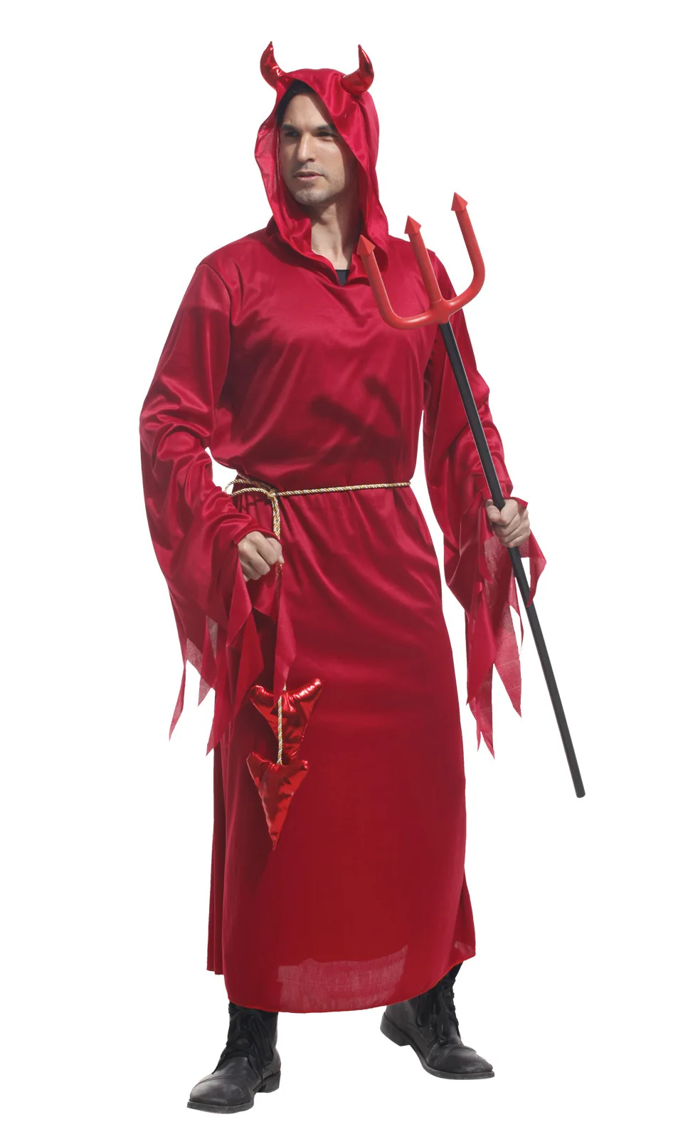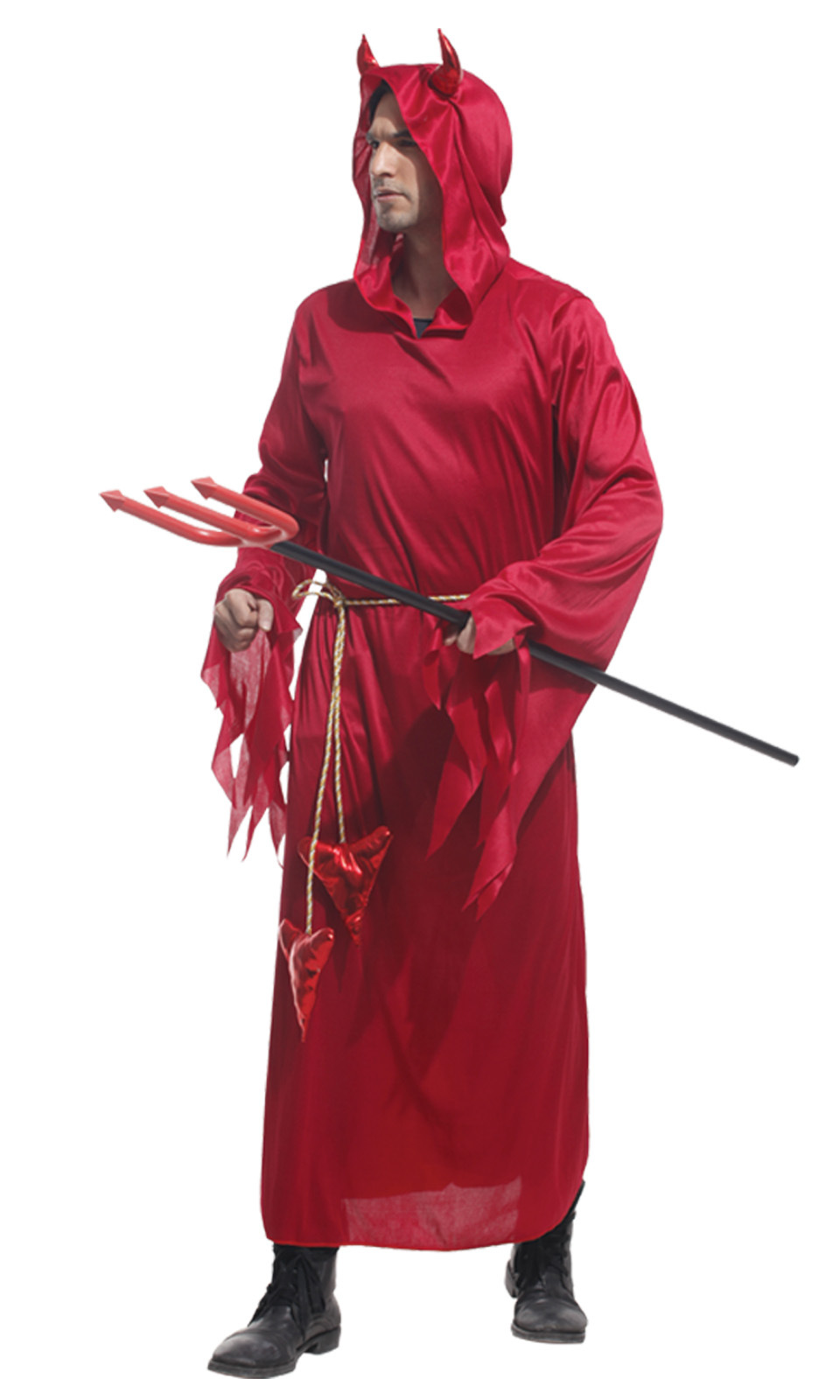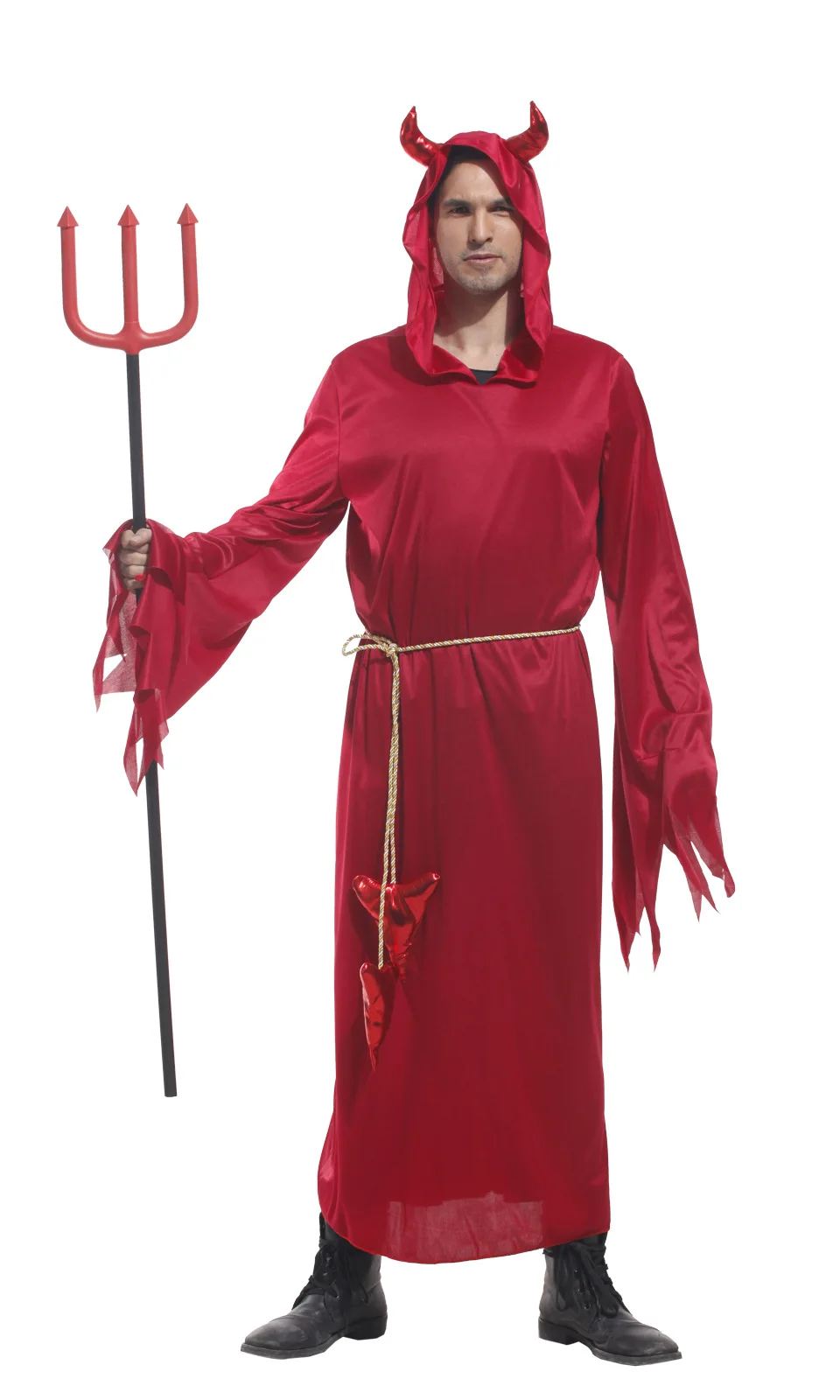 Halloween Devil Cosplay Costume For Men Red Hooded Robe Belt Adult Halloween Costume Men