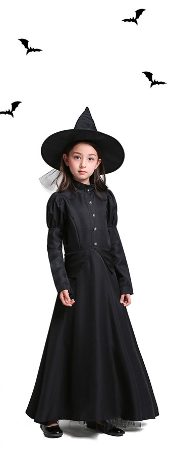 Children Black Long Skirt Halloween Witch Costume Button Decoration Party Costumes For Kids