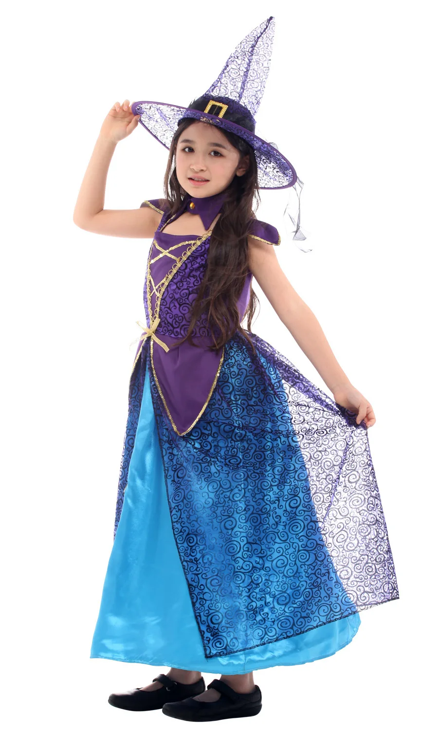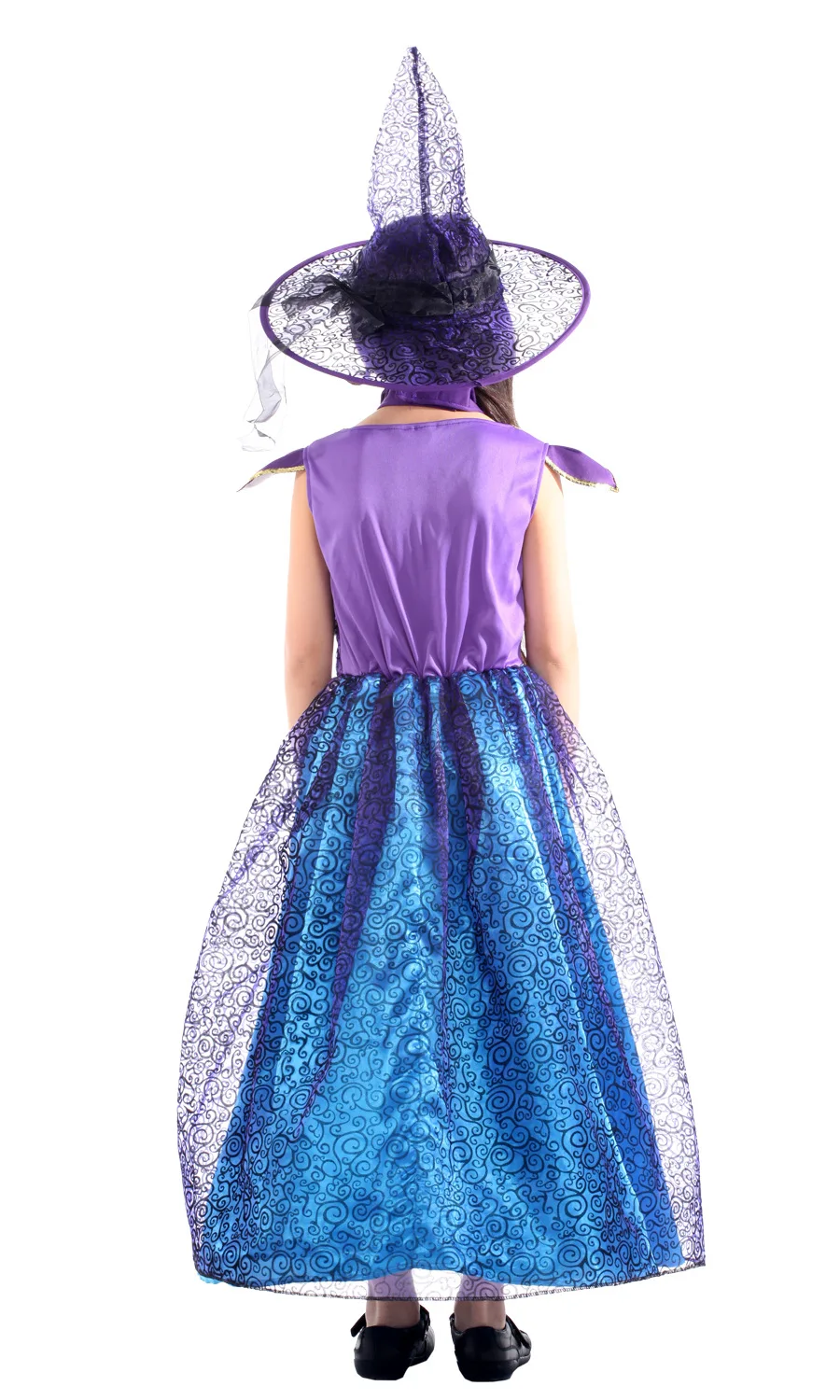 Girls Halloween Witch Costume Kids Purple Cosplay Witch Maxi Dress Girl Costumes