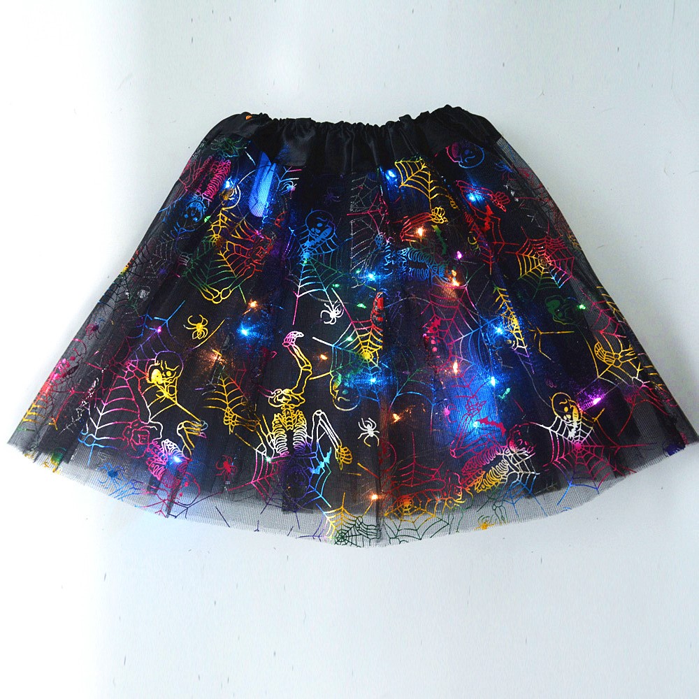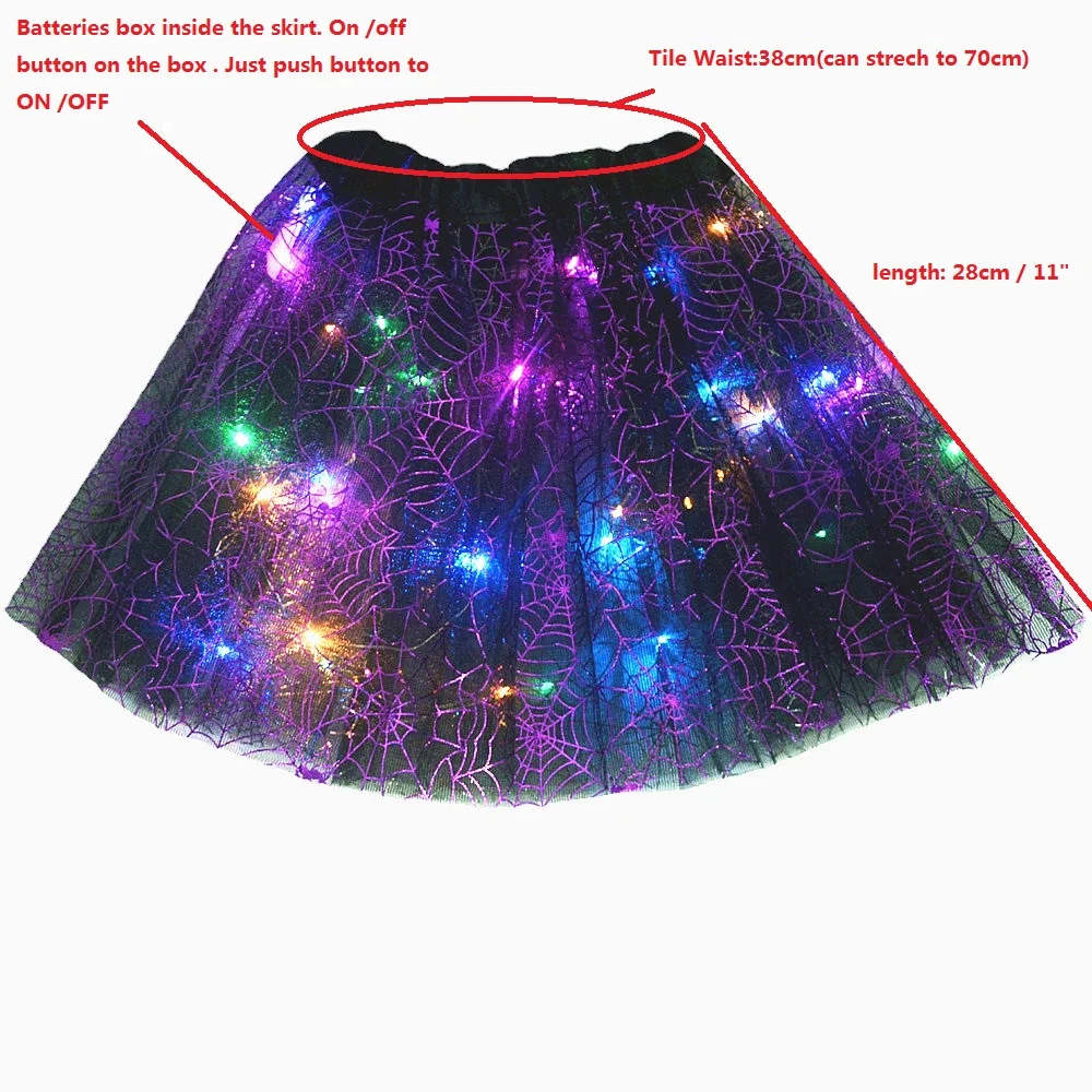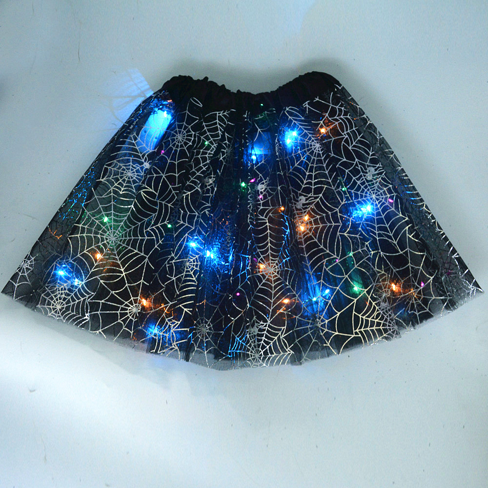 Girls LED Glow Light Witch Hat Spider Web Skirt Halloween Costume Kids Fancy Crossdressing Halloween Party Costume