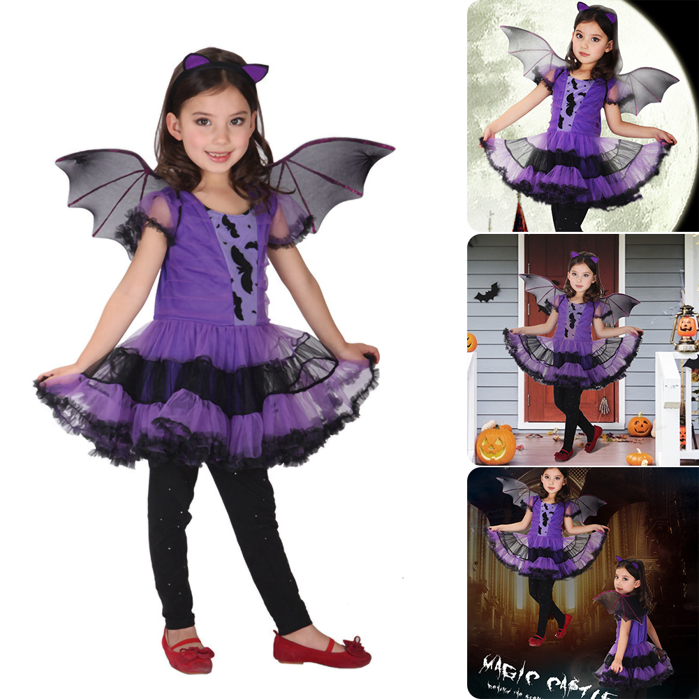 Halloween Batgirl Wings Vampire Witch Cosplay Costume Women Halloween Batgirl Costume For Kids Girls