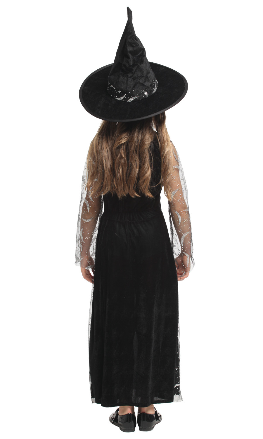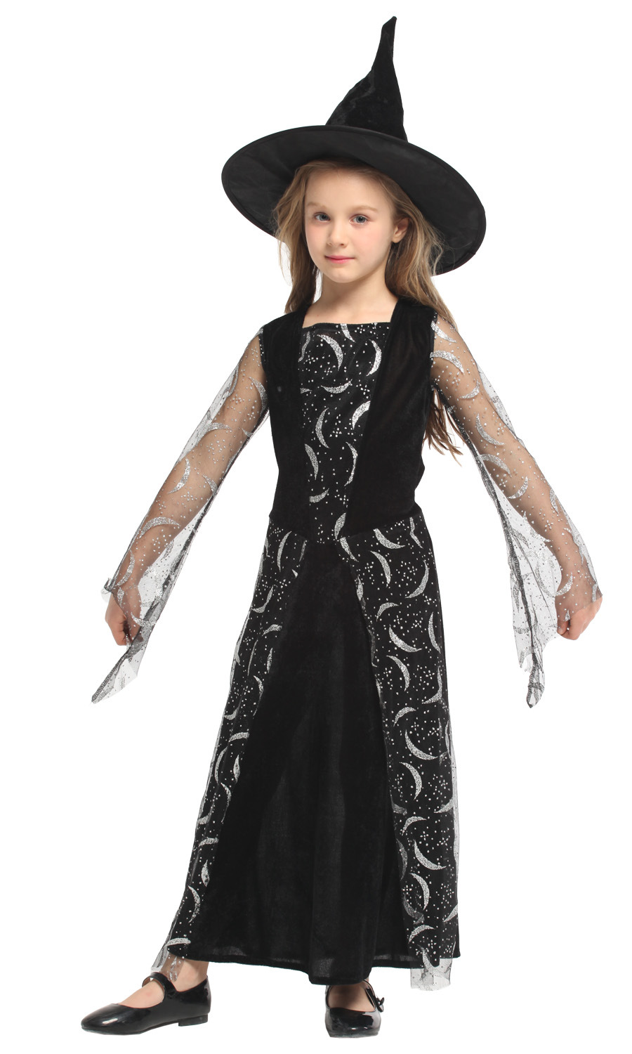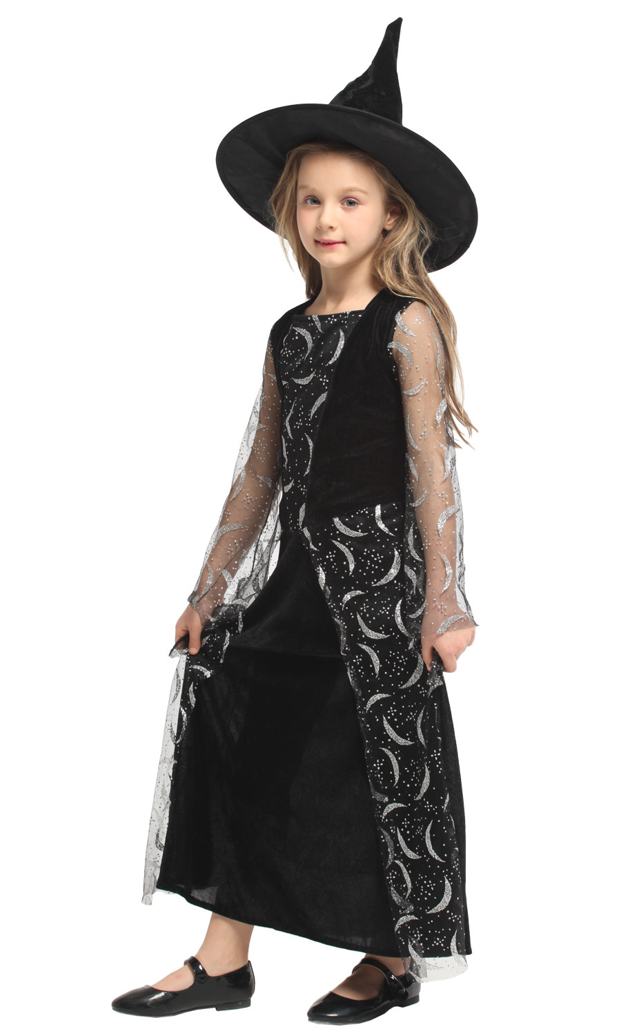 Kid Girls Transparent Long Sleeve Halloween Witch Costume Black Slim Maxi Dress Halloween Party Costume