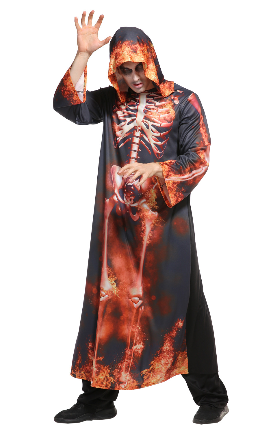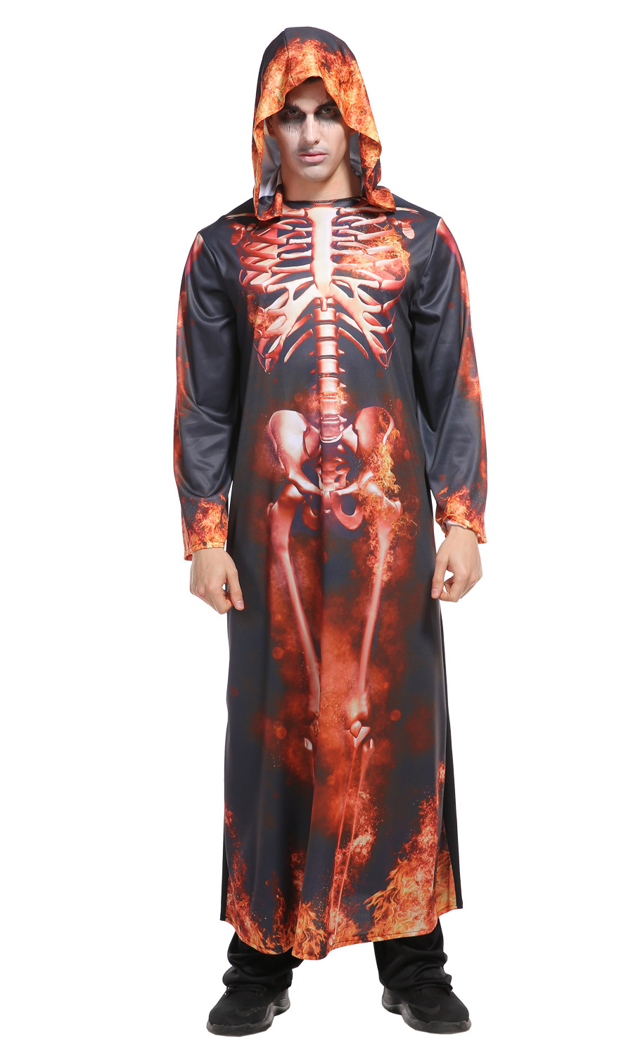 Men Halloween Skeleton Costumes Cosplay Black And Red Hooded Robe Crossdressing Halloween Party Costume