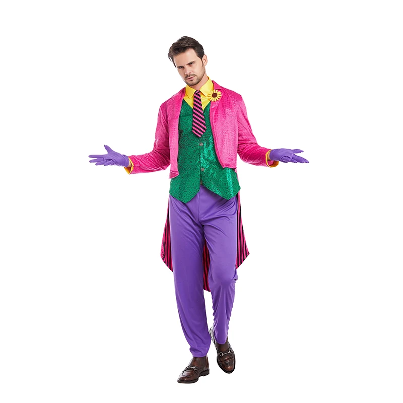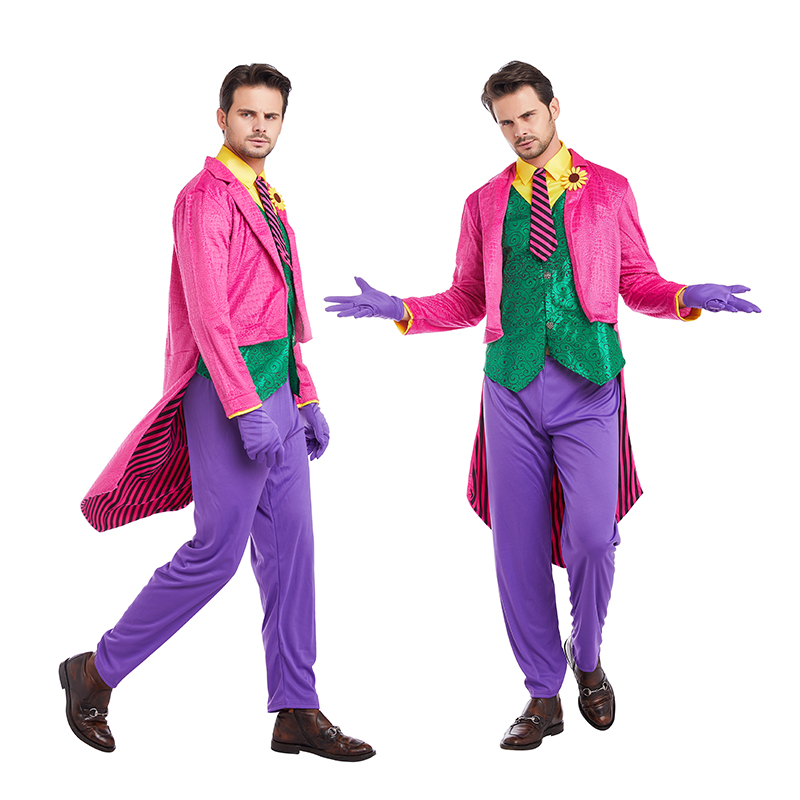 tailcoat with shirt and vest, pants, tie, gloves costume for The Joker Costume Cosplay in Halloween Carnival Festival Role Play Performance Disguise