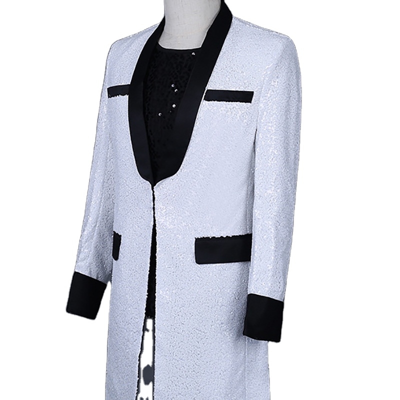 Plus Size Men Suits White Blazers Sequins Deluxe Outfit For Stage Wedding Wearing Costume Homme