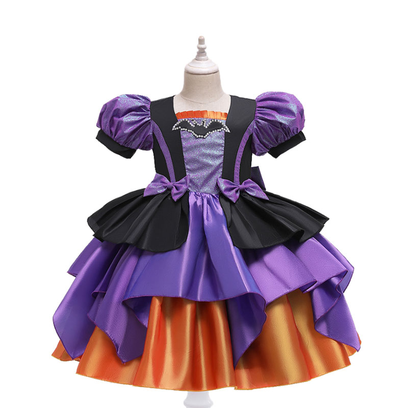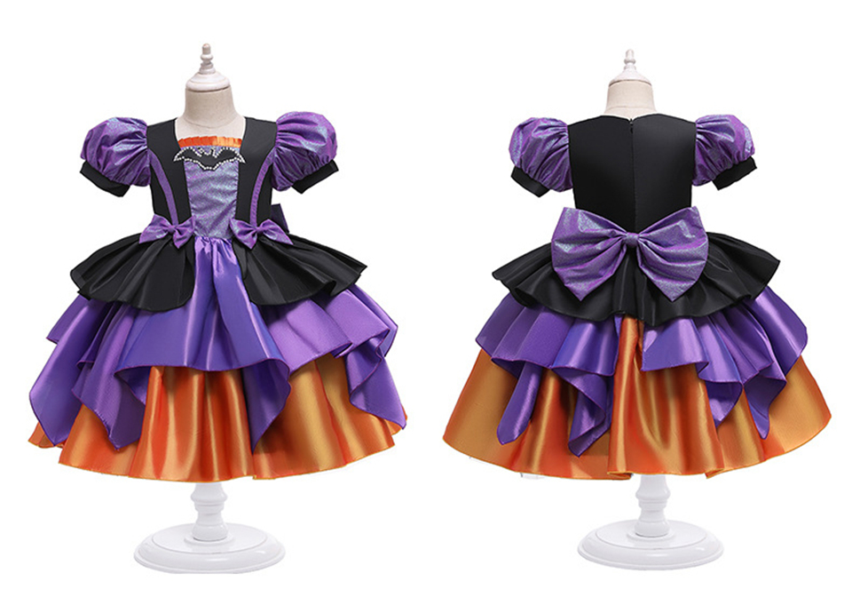 Unique Pumpkin Halloween Witch Costume Girl Gown Princess Dress Party Ball Gown For Children